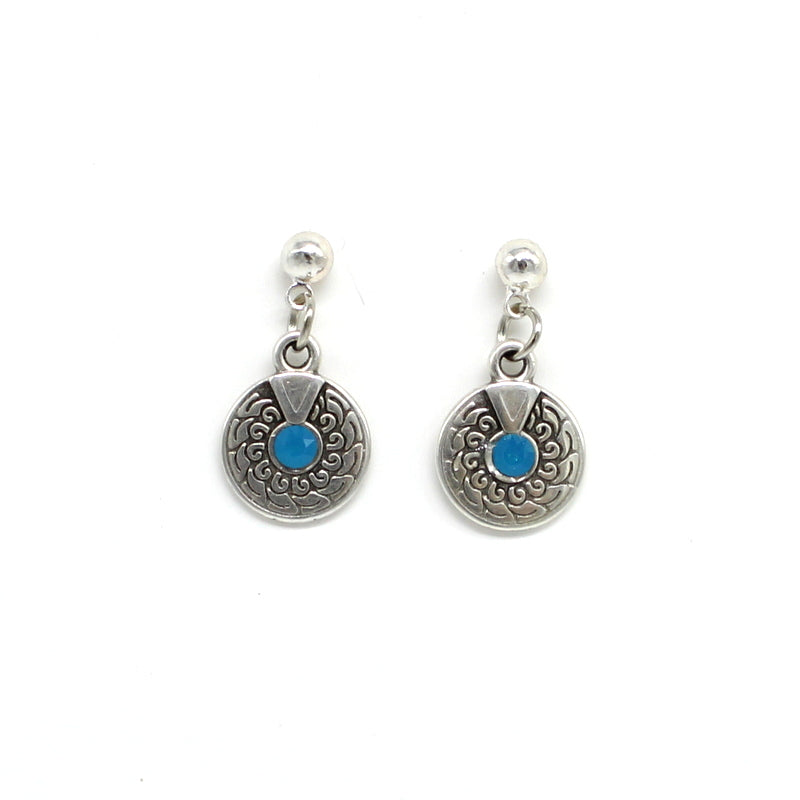 Fermoir boule tige papillon plaqué argent, cristal Swarovski bleu.
