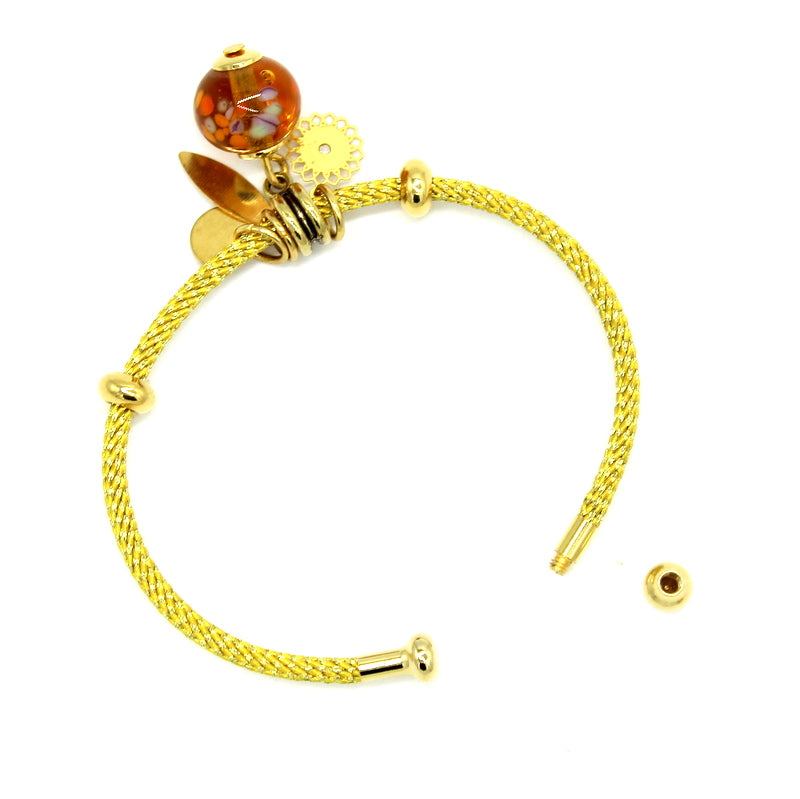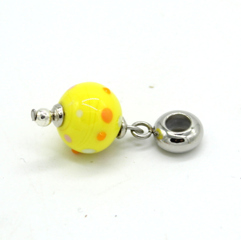 Perles en verre de Murano jaune pois, montée sur pendentif pour bracelet Mix Poé et Soeli, perle interchangeable grâce à l'embout dévissable du bracelet.
