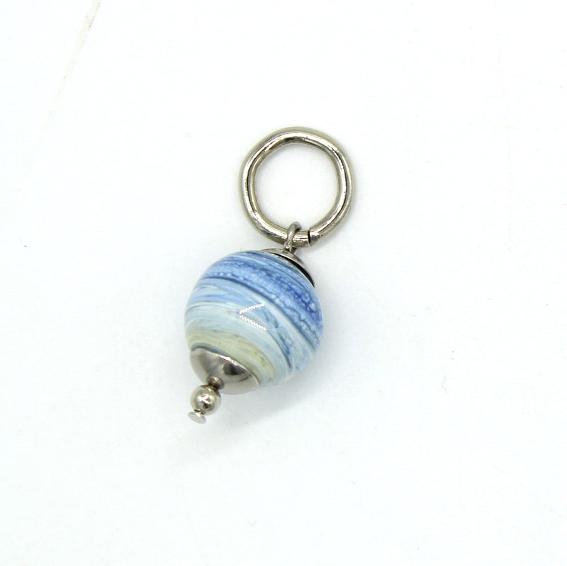 Perles filée à la flamme en verre de Murano, bleu/ivoire, monté sur anneau, s'adapte au jonc articulé.