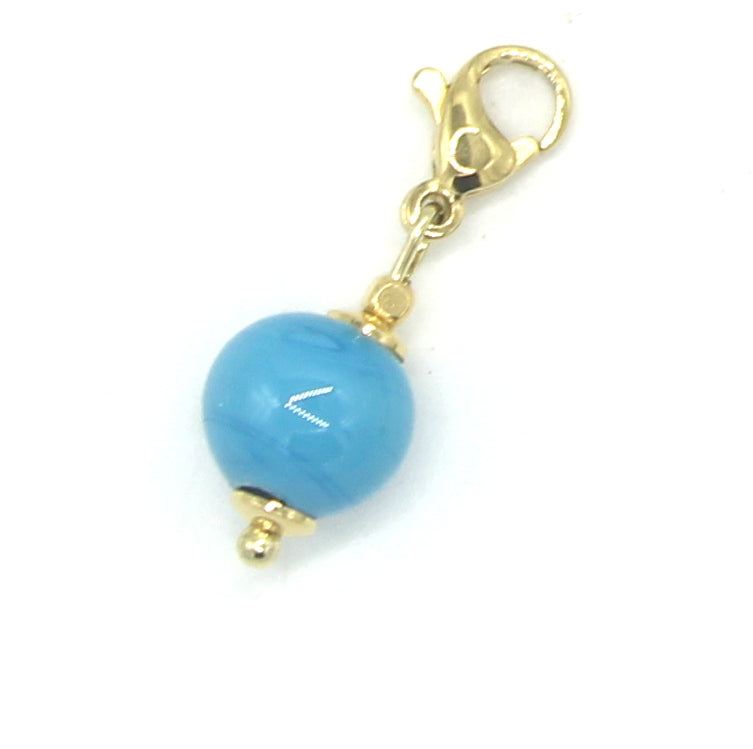 Perle en verre Murano bleu à accrocher à votre bracelet grâce au mousqueton en acier doré, composez votre combinaison au gré de vos envies ou de vos tenues.